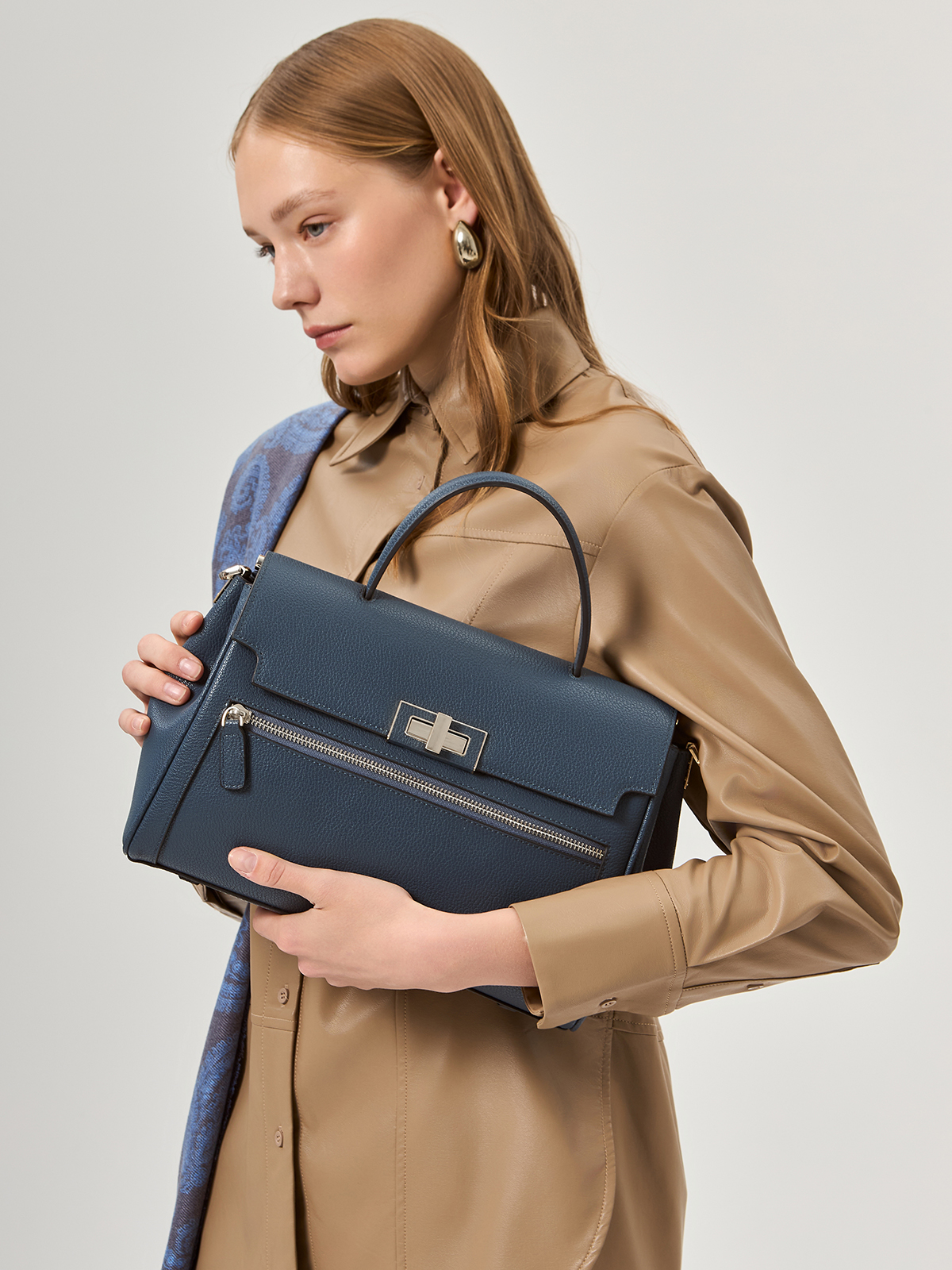 Женская сумка торговой марки Labbra из натуральной кожи. Модель закрывается клапаном на замок. Содержит внутри одно отделение в котором имеются карман на молнии и два открытых кармана. На передней стенке есть карман на молнии. Высота ручки - 10 см. Длина регулируемого съемного плечевого ремня из натуральной кожи - 92 см ширина - 18 см. Модель не имеет ножки на дне. Не вмещает формат А4.
