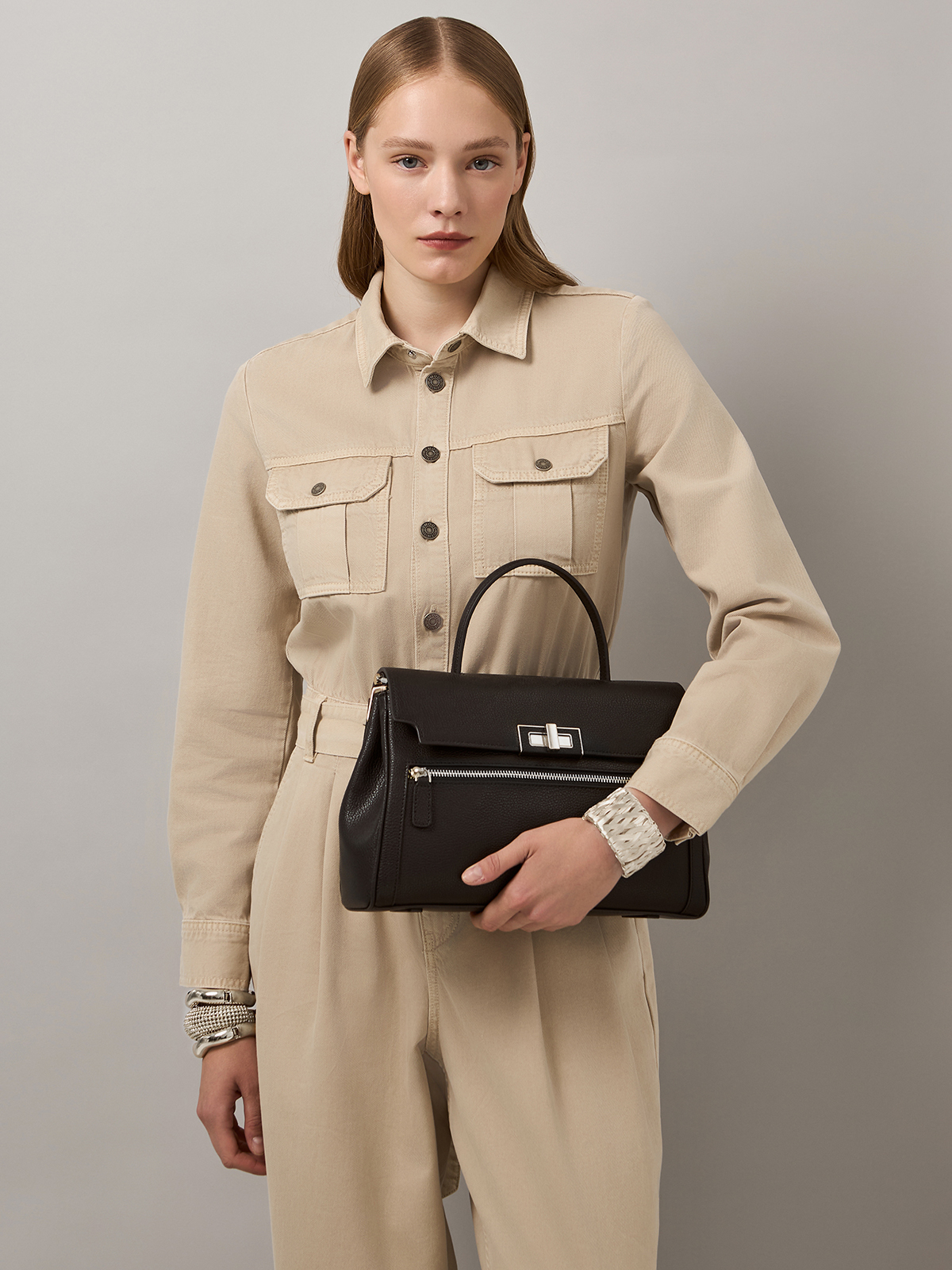 Женская сумка торговой марки Labbra из натуральной кожи. Модель закрывается клапаном на замок. Содержит внутри одно отделение в котором имеются карман на молнии и два открытых кармана. На передней стенке есть карман на молнии. Высота ручки - 10 см. Длина регулируемого съемного плечевого ремня из натуральной кожи - 92 см ширина - 18 см. Модель не имеет ножки на дне. Не вмещает формат А4.