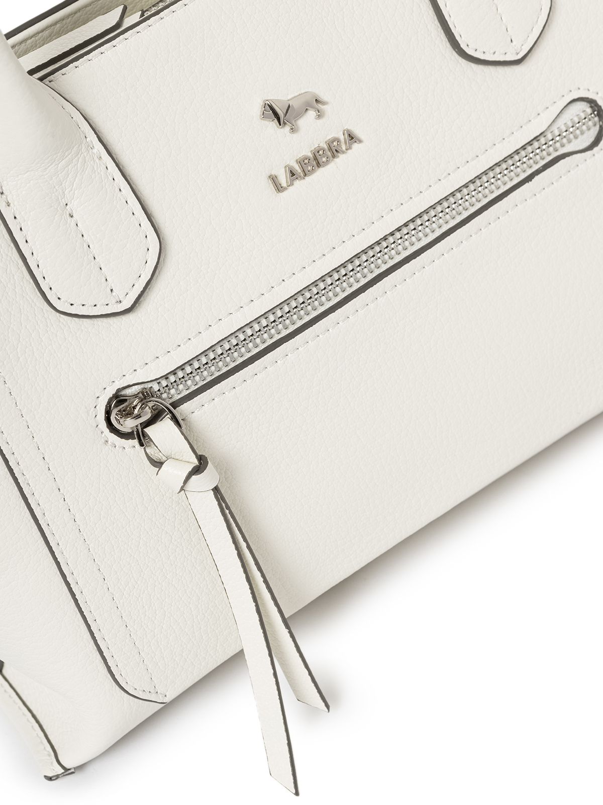 Женская сумка торговой марки Labbra из натуральной кожи. Модель застегивается на молнию. Содержит внутри два отдела между которыми имеется отделение на молнии. В одном отделе имеется карман на молнии в другом - два открытых кармана. На передней стенке есть карман на молнии. Высота ручки - 13 см. Максимальная длина регулируемого съемного плечевого ремня из натуральной кожи - 102 см ширина - 15 см. Модель имеет ножки на дне. Не вмещает формат А4.