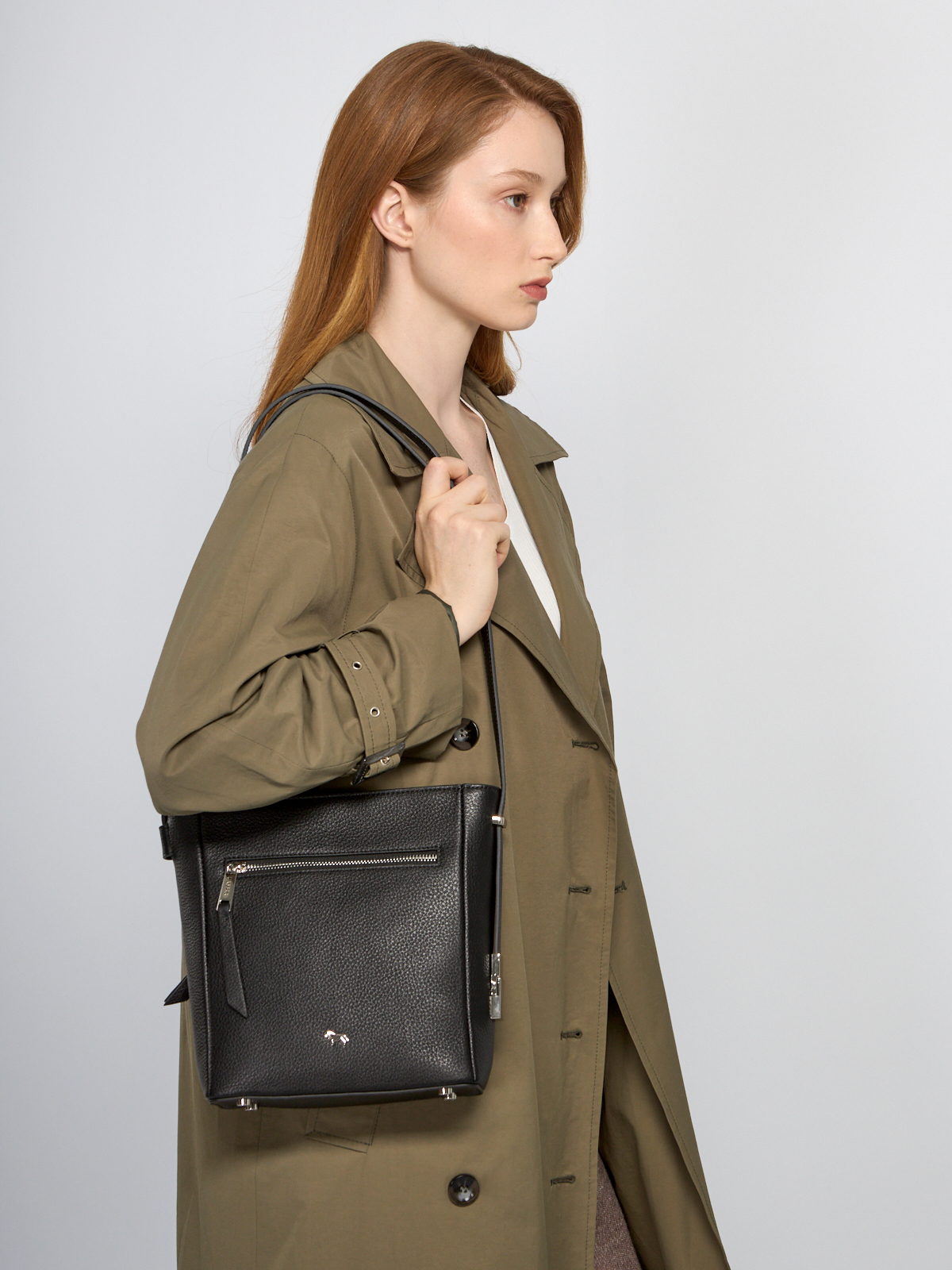 Женская сумка торговой марки Labbra из натуральной кожи. Модель застегивается на молнию. Содержит внутри один отдел в котором имеются карман на молнии и два открытых кармана. На передней и задней стенках есть карманы на молниях. Высота ручки - 32 см максимальная длина регулируемого плечевого ремня - 132 см. Ручка трансформируется в плечевой ремень. Модель имеет ножки на дне. Не вмещает формат А4.
