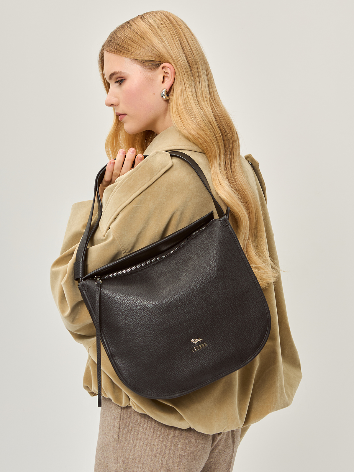 Женская сумка торговой марки Labbra из натуральной кожи. Модель застегивается на молнию. Содержит одно отделение в котором имеются карман на молнии карман на кнопке и четыре кармашка для пластиковых карт. Высота ручки - 22 см. Модель не имеет ножки на дне. Не вмещает формат А4.