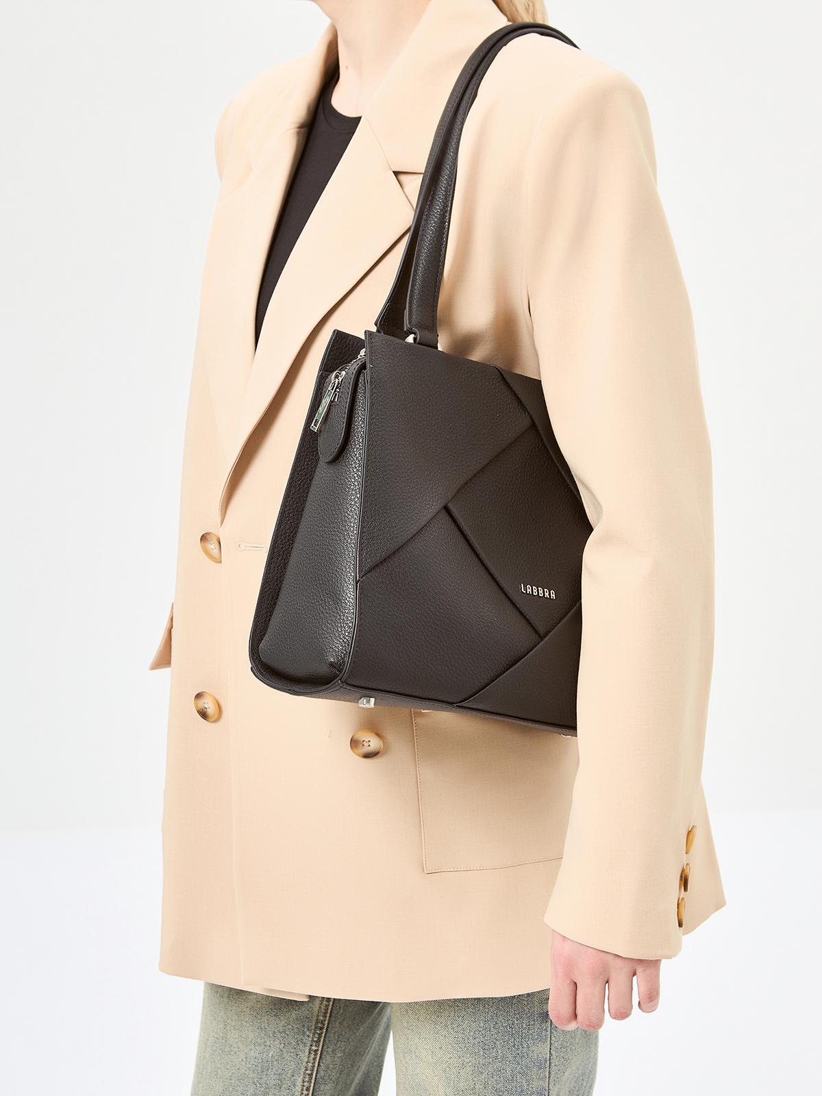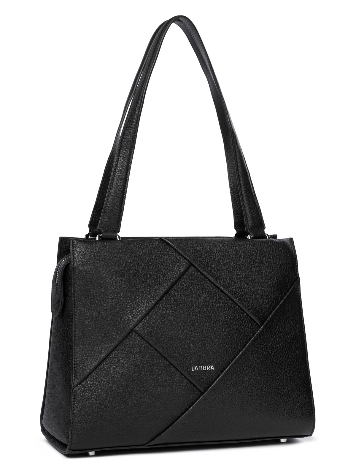 Женская сумка торговой марки Labbra из натуральной кожи. Модель застегивается на двухзамковую молнию. Содержит внутри один отдел в котором имеются карман на молнии и два открытых кармана. На задней стенке есть отделение на магнитной кнопке. Высота ручек - 26 см. Модель имеет ножки на дне. Не вмещает формат А4.