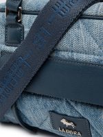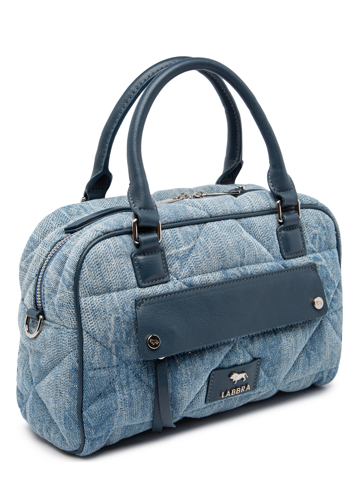 Женская сумка торговой марки Labbra из хлопка летнего голубого цвета с эффектом варки и потертостей. Модель дополнена декоративной стежкой. Отделка выполнена из натуральной кожи в насыщенном оттенке синего Avio" что создает стильный контраст. Модель застегивается на молнию. Внутри одно отделение с карманом на молнии и тремя открытыми карманами. Дополнительный карман на молнии на передней стенке. Высота ручек - 12 см. Максимальная длина регулируемого съемного плечевого ремня из текстиля - 124 см ширина - 35 см. Модель имеет ножки на дне. Не вмещает формат А4."