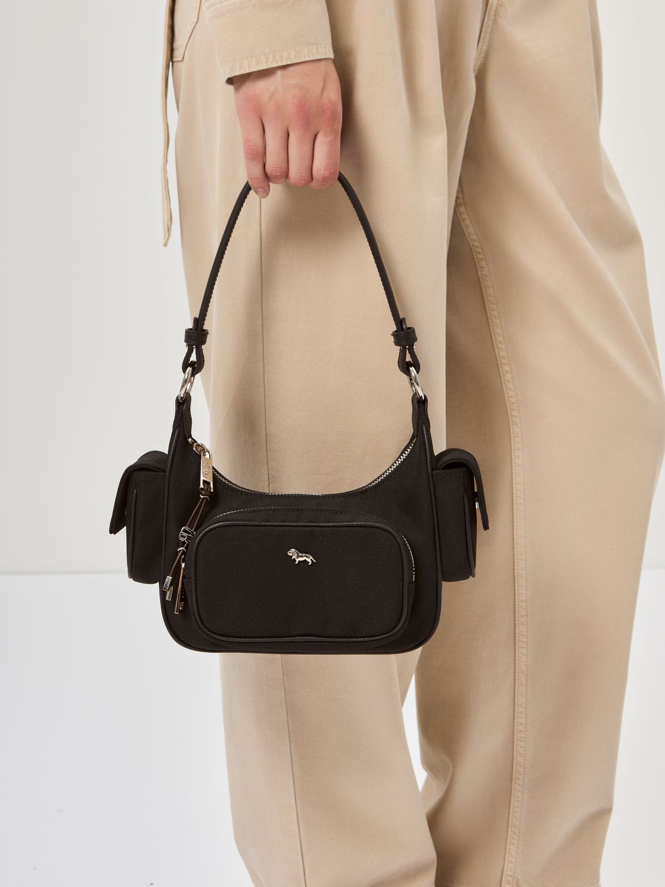 Женская сумка торговой марки Labbra из нейлона. Новая айдентика любимого бренда представлена в оригинальной подвеске из кожи с авторской фурнитурой. Специальное плетение и водоотталкивающая пропитка нитей обеспечивают защиту от влаги: вода не впитывается а скатывается с поверхности. Ткань гармонично сочетается с натуральной кожей создавая практичное и элегантное изделие. Модель застегивается на молнию. Внутри одно отделение с карманом на молнии и открытым карманом. На передней стенке дополнительный карман на молнии. По бокам - карманы на магнитной кнопке. Высота ручки - 26 см. Максимальная длина регулируемого съемного плечевого ремня из натуральной кожи - 113 см ширина - 1 см. Модель не имеет ножки на дне. Не вмещает формат А4.