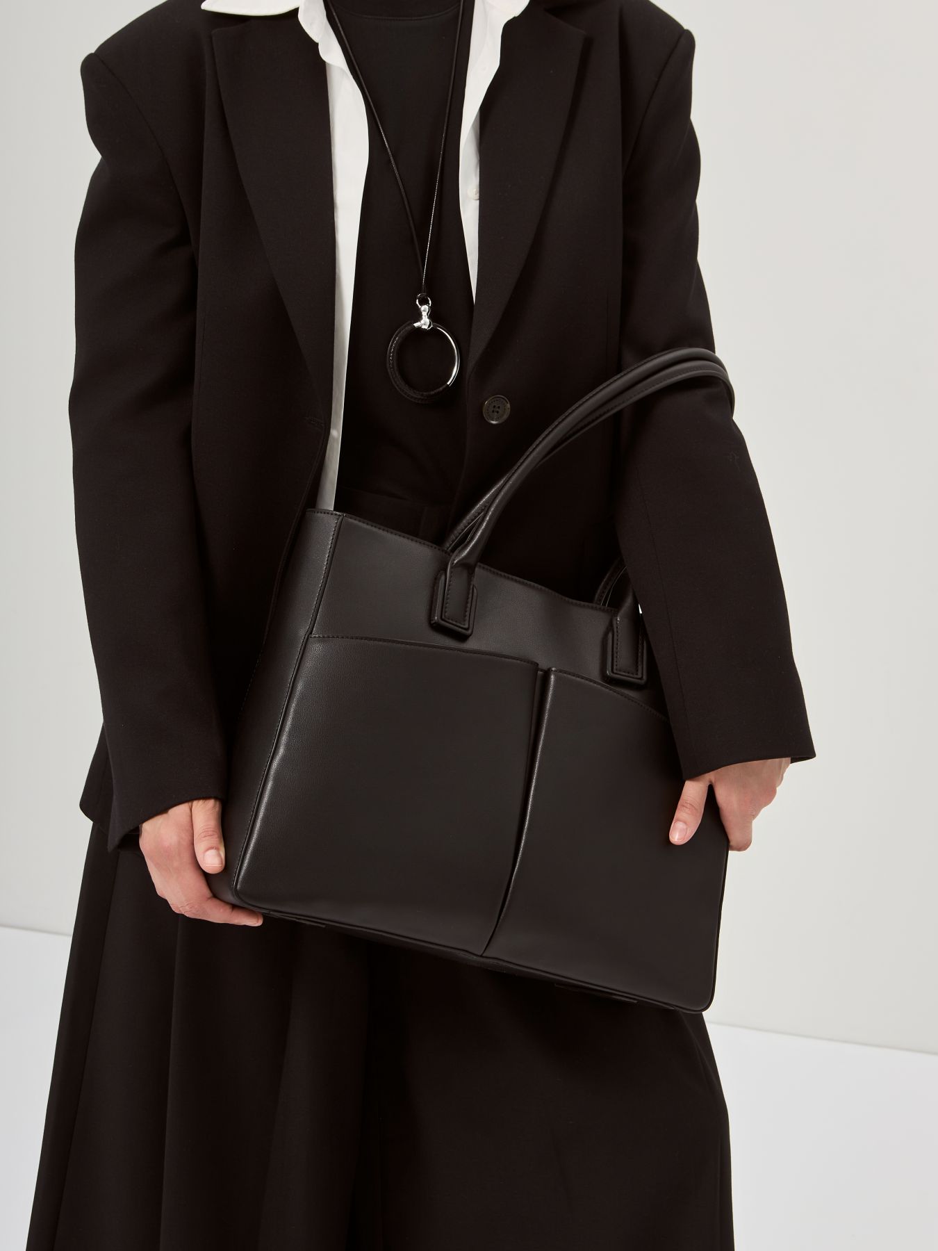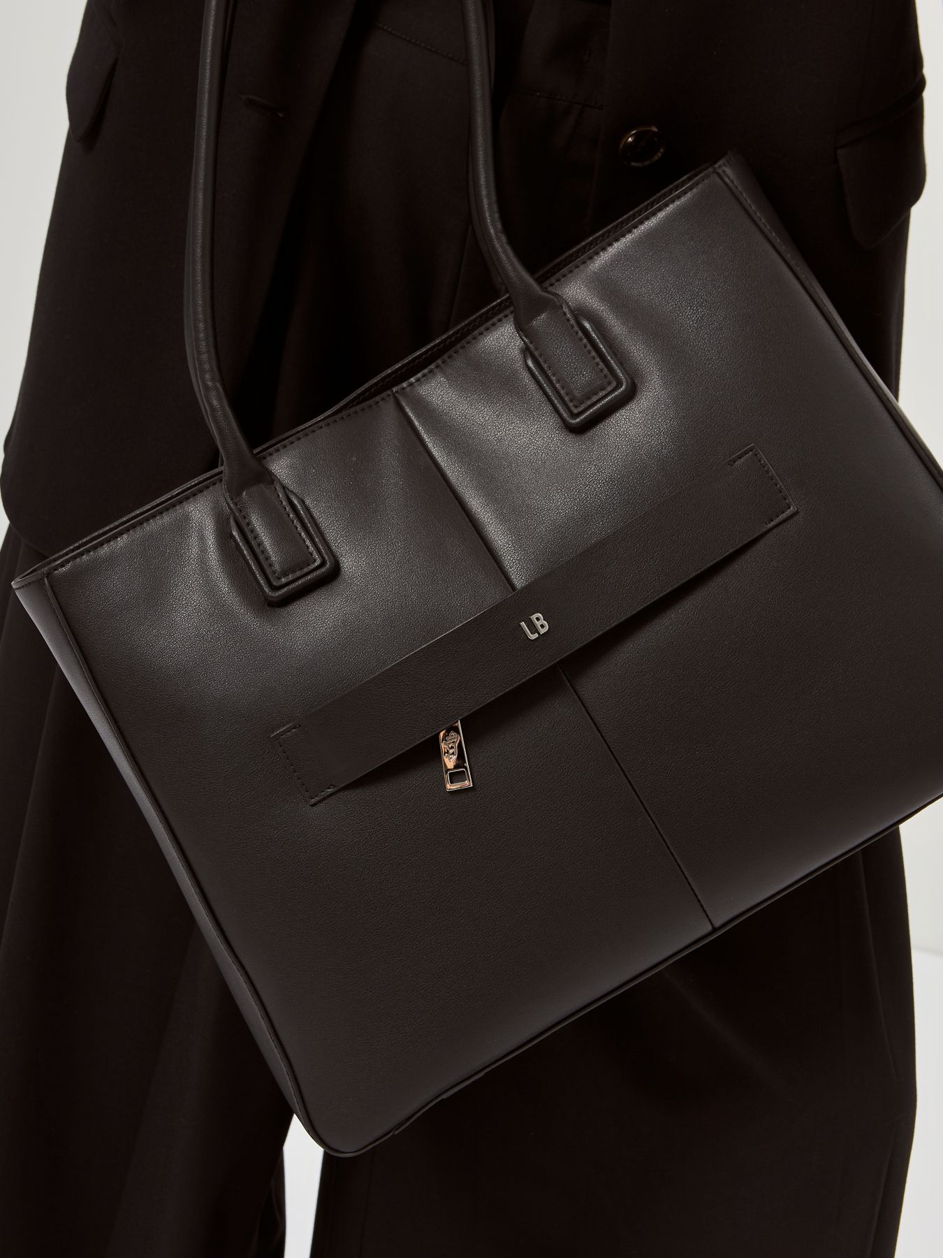 Женская сумка торговой марки Labbra из натуральной кожи. Модель застегивается на молнию. Содержит одно отделение в котором имеются два кармана на молнии и два открытых кармана. На передней стенке есть открытые карманы на задней - карман на молнии. Высота ручек - 24 см. Модель не имеет ножки на дне. Вмещает формат А4.