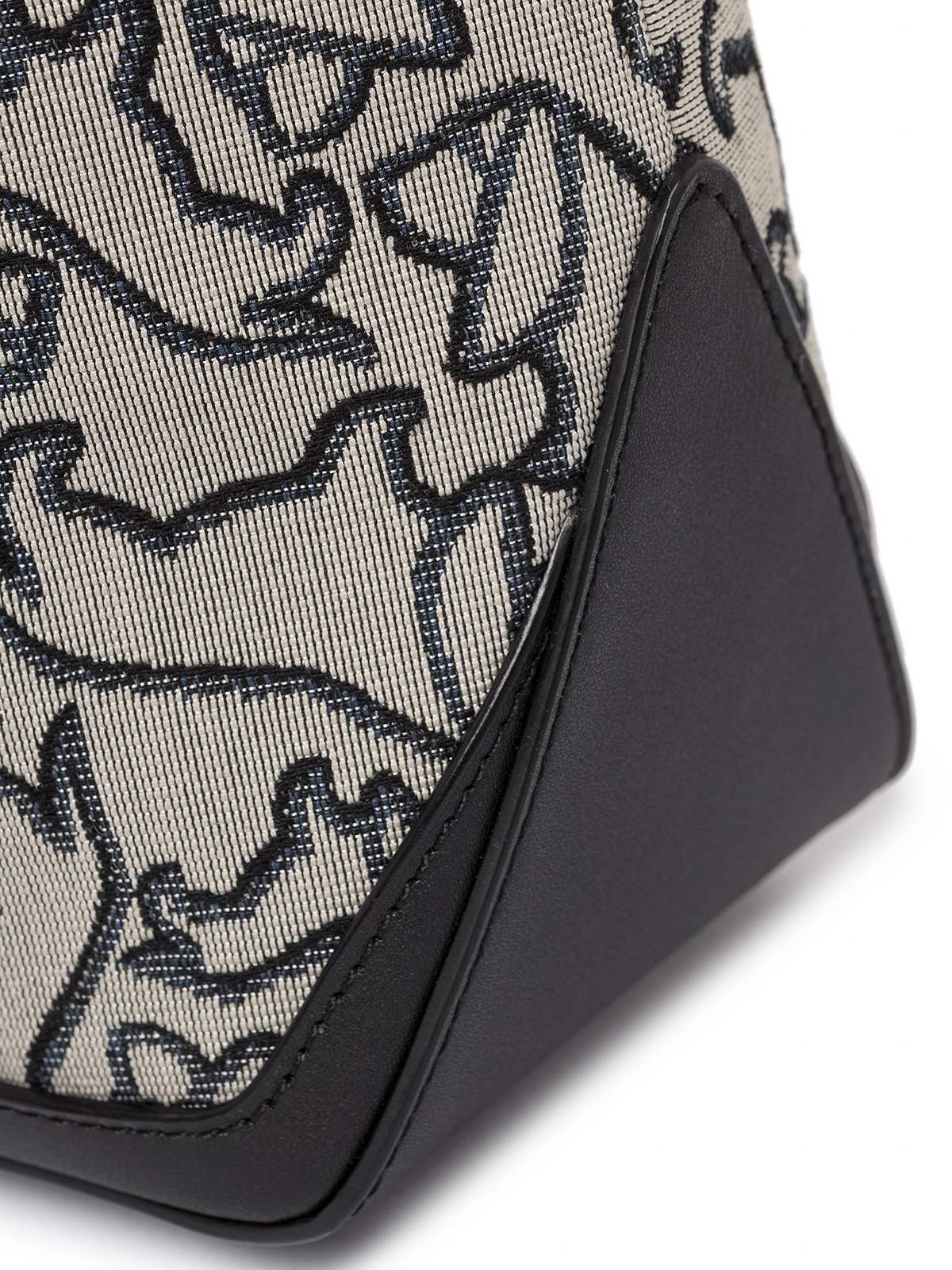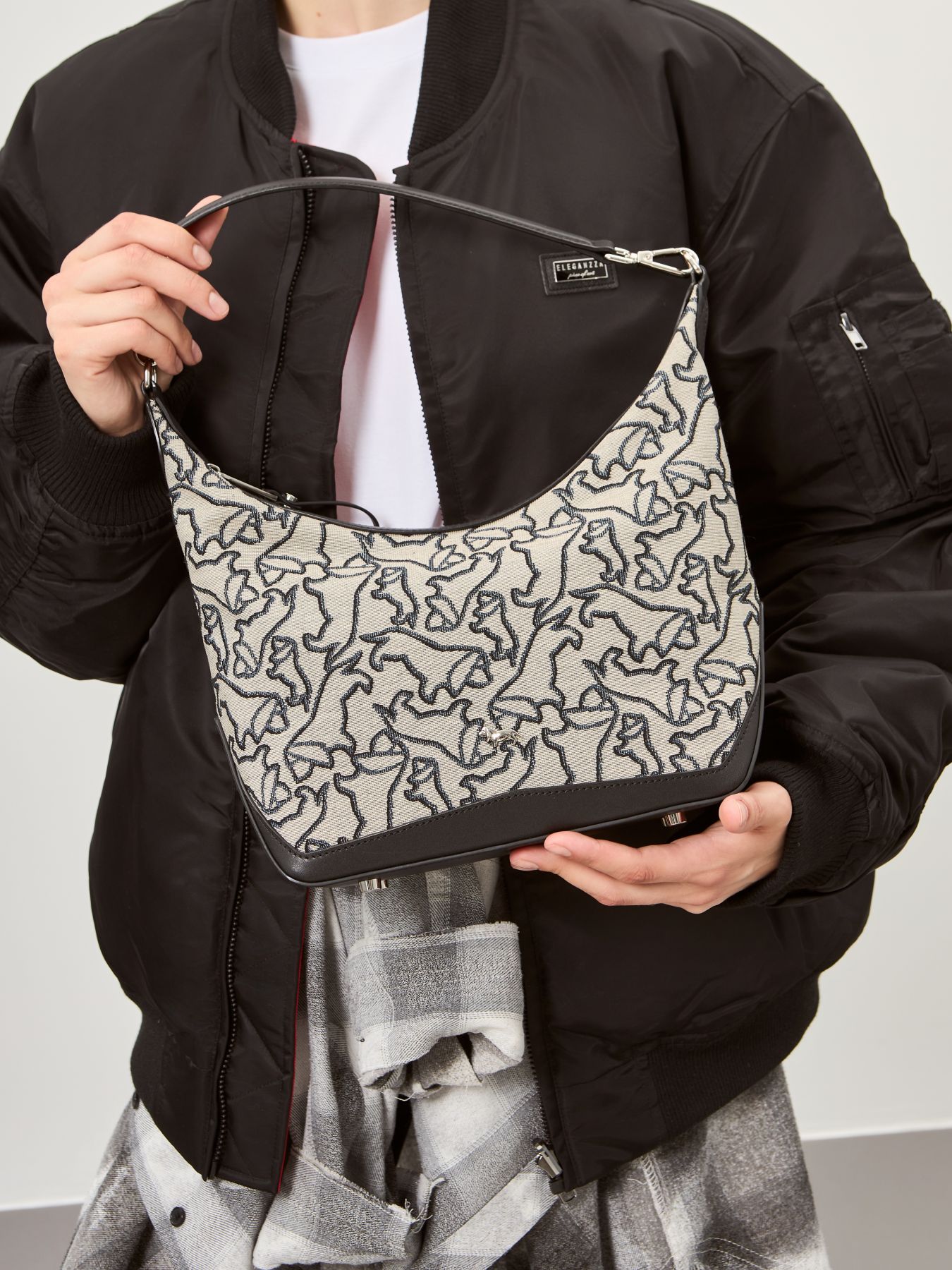 Женская сумка торговой марки Labbra из плотного жаккардового полиэстера декорированная эксклюзивным авторским принтом с символикой бренда - собачкой. Модель застегивается на молнию. Внутри одно отделение с карманом на молнии и двумя открытыми карманами. На задней стенке сумки есть карман на молнии. Высота ручки - 23 см. Длина регулируемого съемного плечевого ремня из натуральной кожи - 90 см ширина - 15 см. Модель имеет ножки на дне. Не вмещает формат А4.
