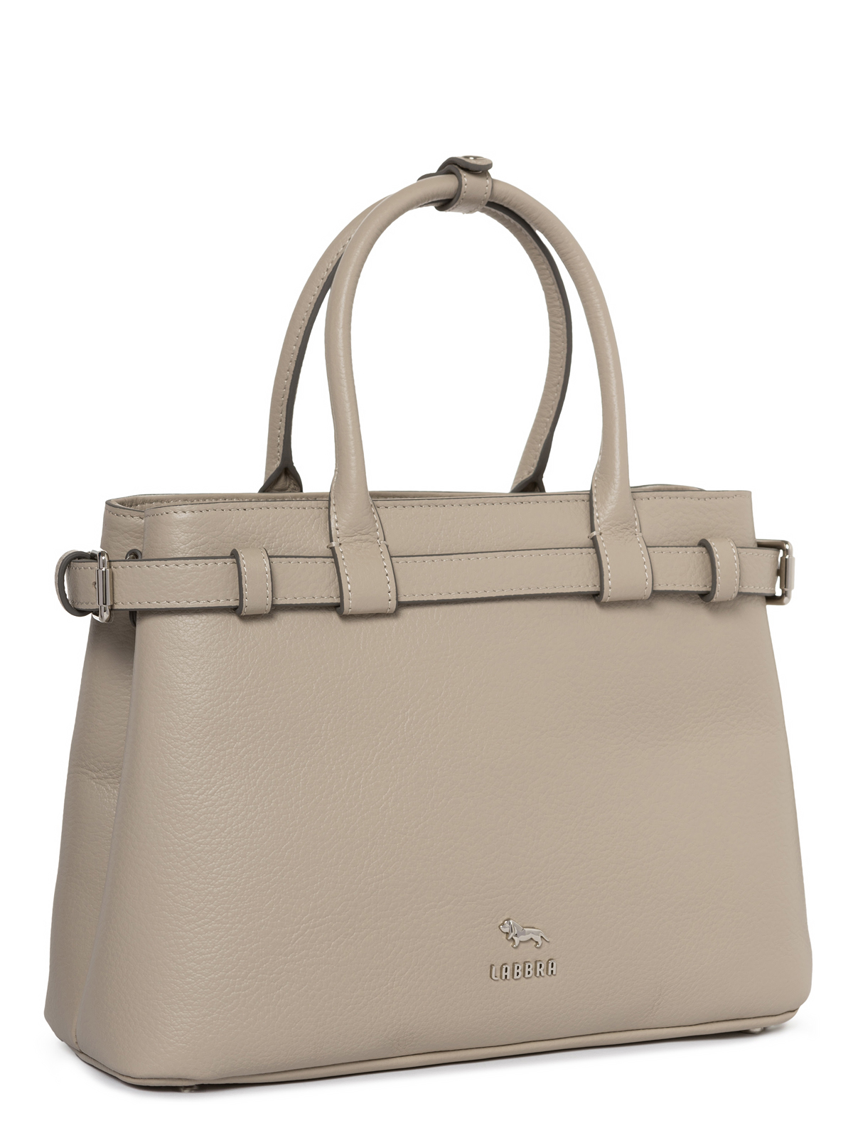 Женская сумка торговой марки Labbra из натуральной кожи. Модель застегивается на молнии. Содержит внутри два отдела в одном имеются два открытых кармана в другом - карман на молнии. Высота ручек – 12 см. Максимальная длина регулируемого съемного плечевого ремня из натуральной кожи – 101 см ширина – 2 см. Модель имеет ножки на дне. Не вмещает формат А4.