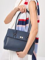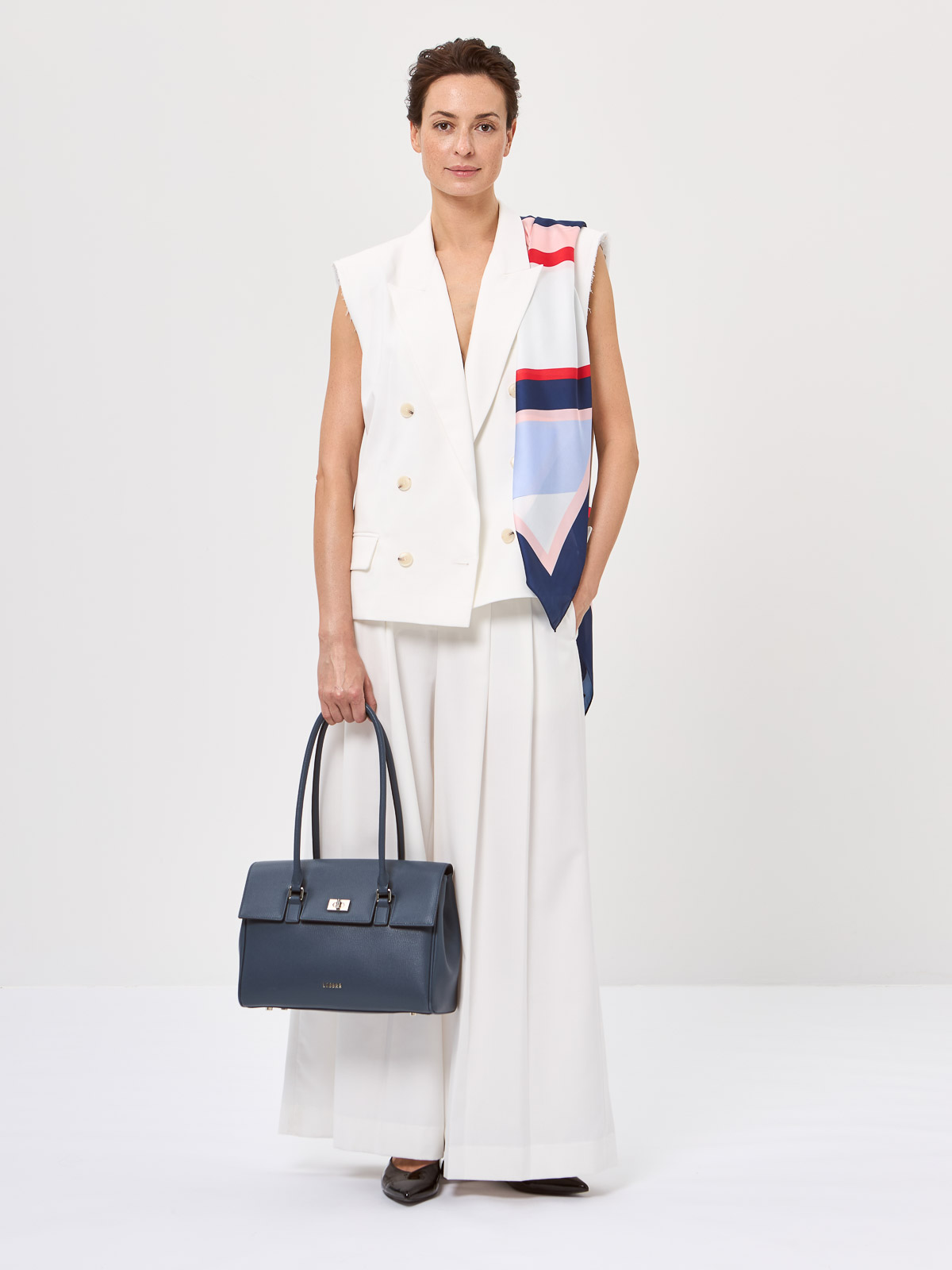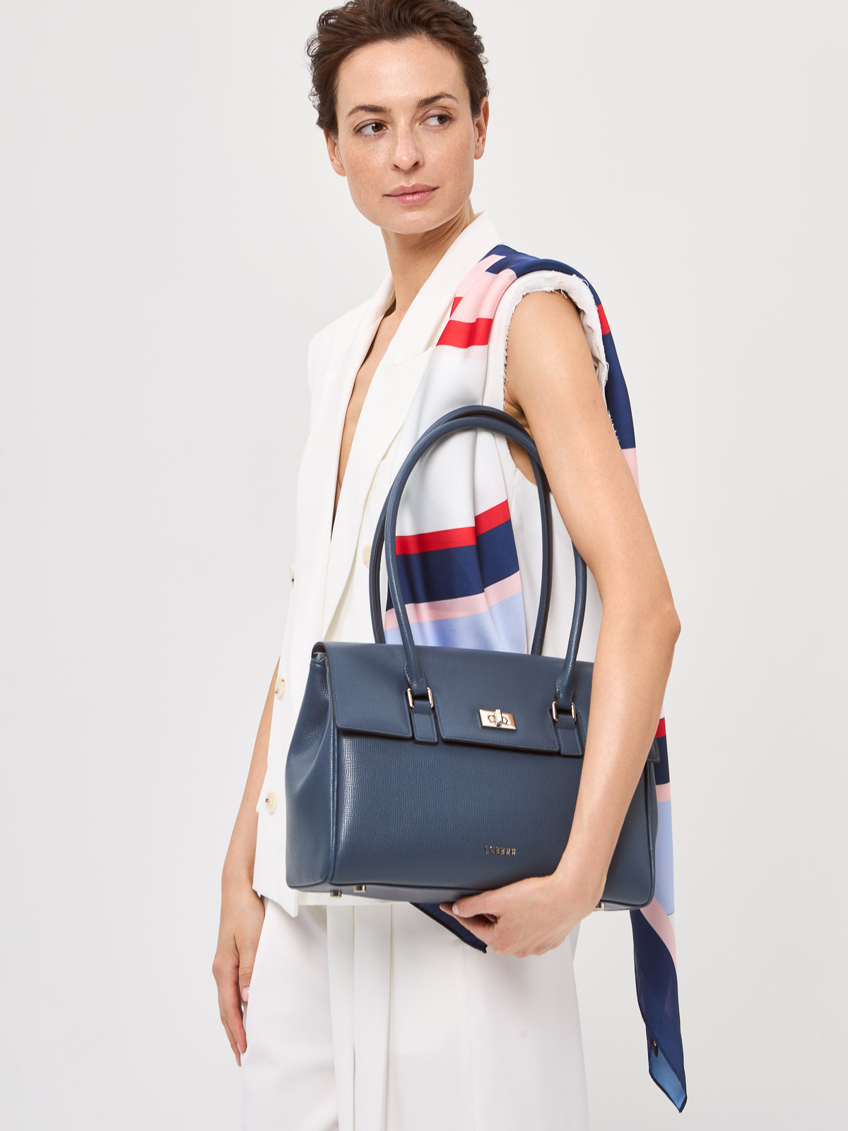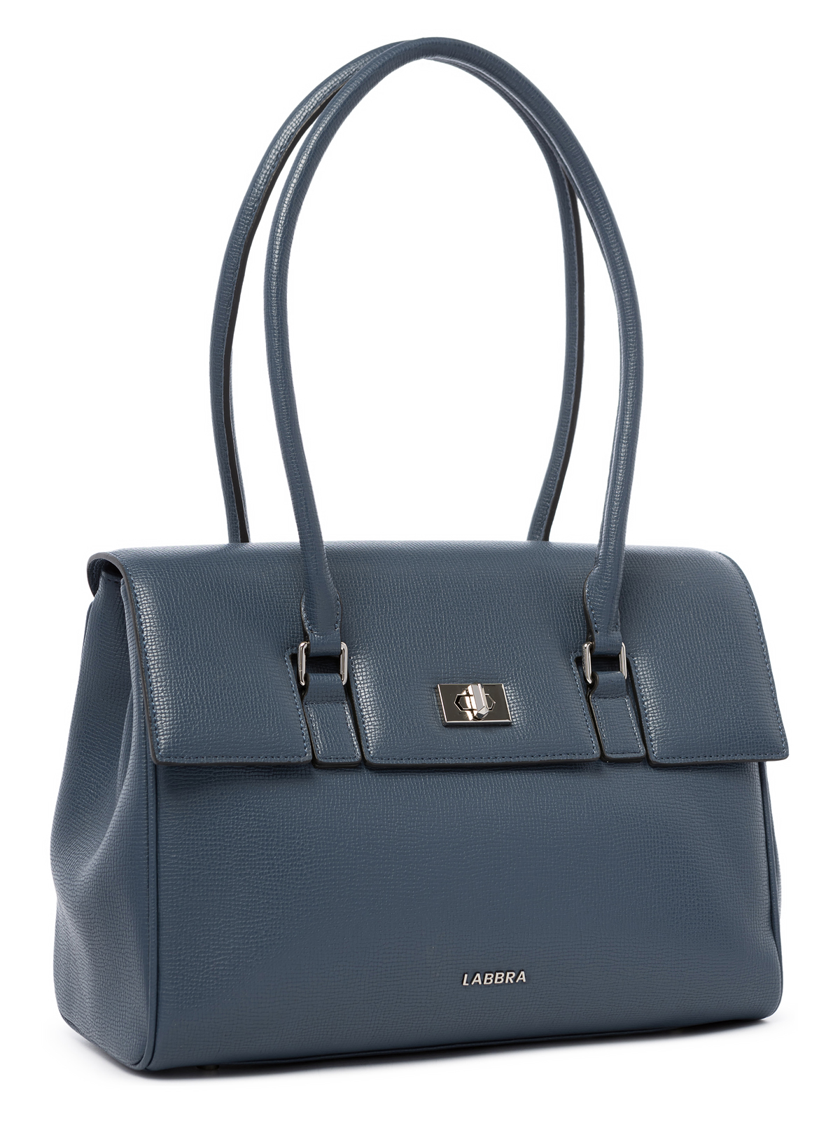 Женская сумка торговой марки Labbra из натуральной кожи. Модель закрывается клапаном на замок. Содержит внутри два отдела между которыми имеется отделение на молнии. В одном отделе имеется карман на липучке в другом - открытый карман. На задней стенке есть карман на молнии в котором имеется петля из тесьмы для фиксации сумки на ручке чемодана. Высота ручек - 25 см. Модель имеет ножки на дне. Не вмещает формат А4.