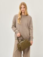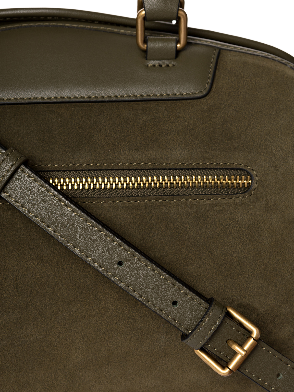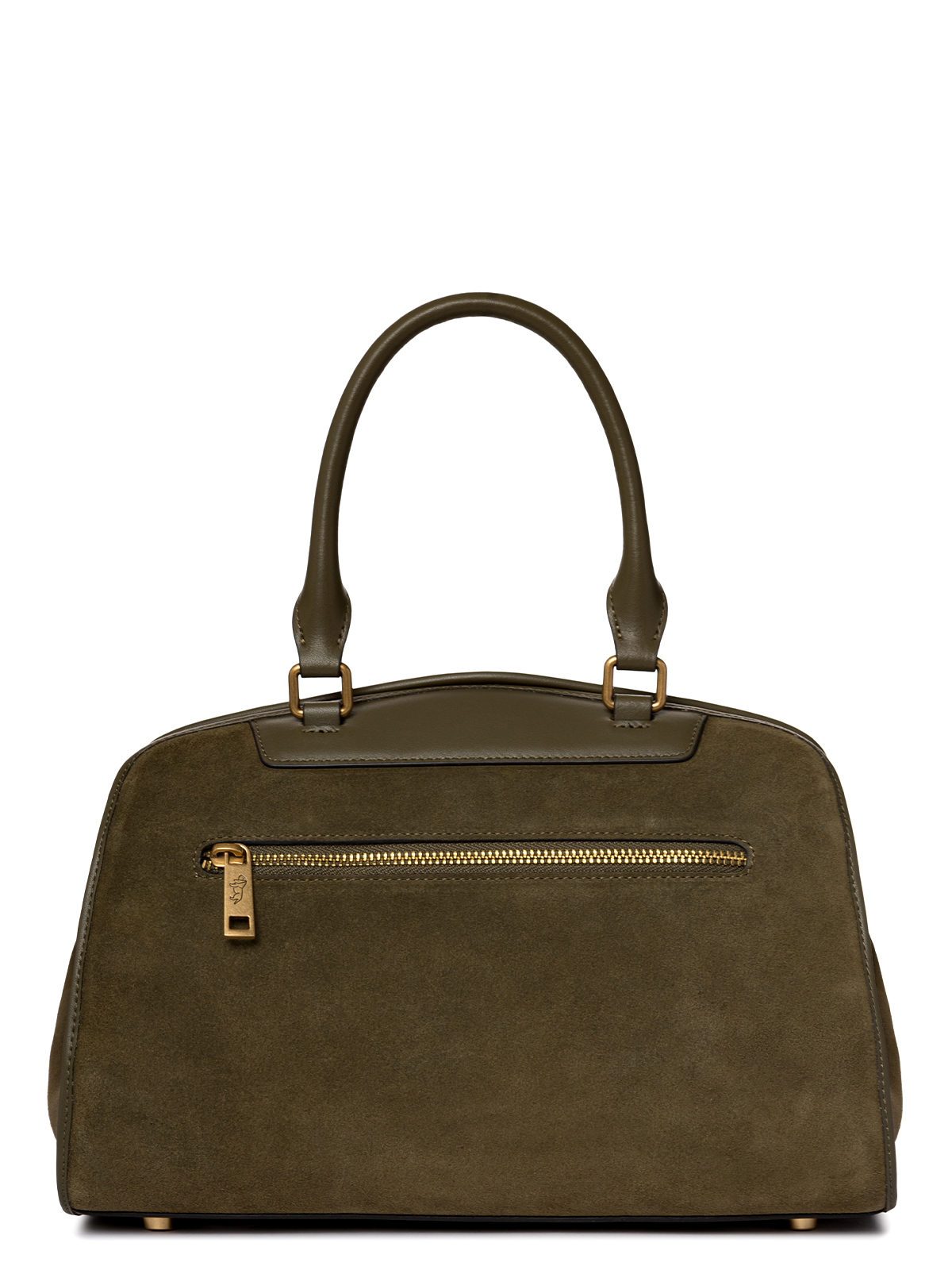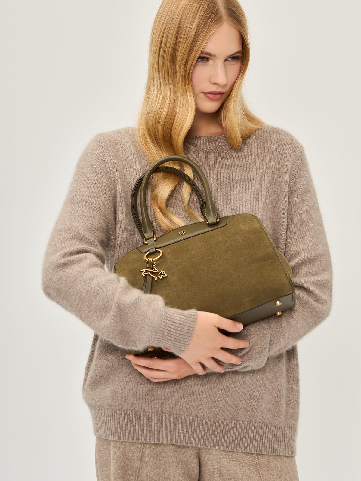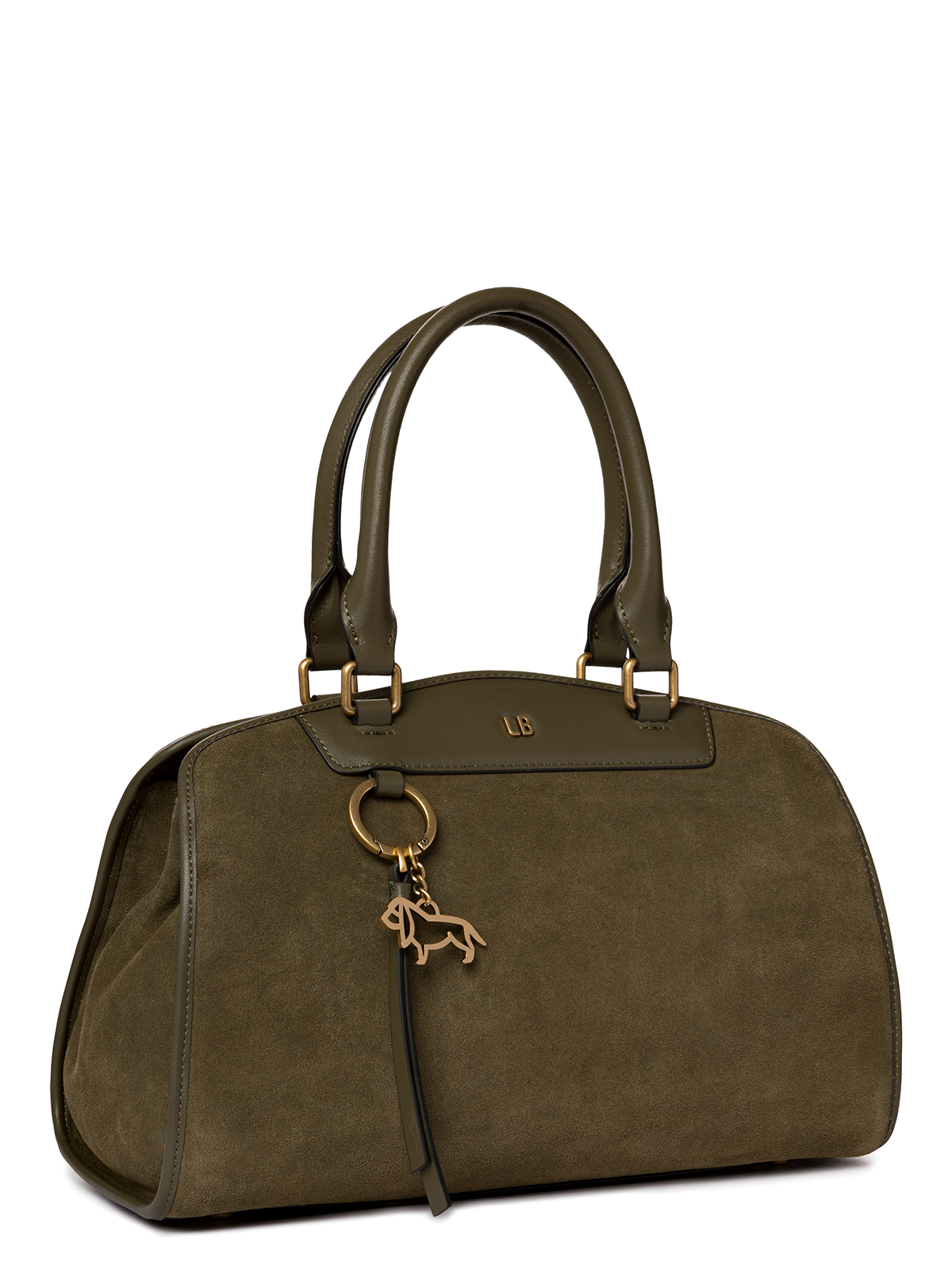 Трендовая новинка бренда - женская сумка Labbra из кожевенного велюра который гармонично сочетается с деталями из натуральной кожи. Модель застегивается на молнию. Внутри два отделения с двумя карманами на молнии и открытым карманом. На задней стенке сумки есть карман на молнии. Высота ручек - 13 см. Длина регулируемого съемного плечевого ремня из натуральной кожи - 97 см ширина - 15 см. Модель имеет ножек на дне. Не вмещает формат А4.