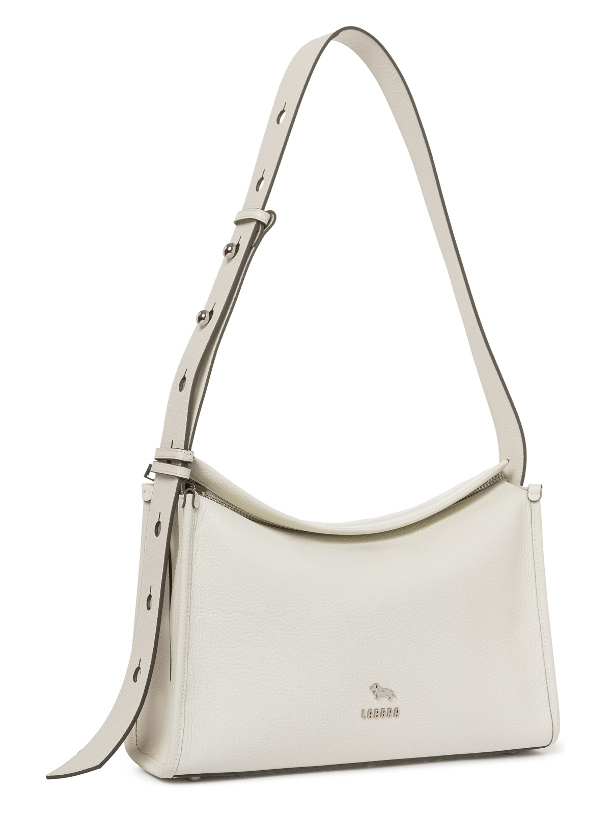 Женская сумка торговой марки Labbra из натуральной кожи. Модель закрывается на металлическую молнию имеет одно отделение которое содержит внутри карман на молнии и два открытых кармана. На задней стенке - карман на молнии. Высота ручки - 35 см. Модель имеет ножки на дне. Не вмещает формат А4.