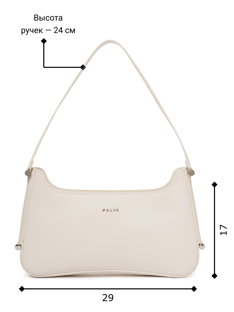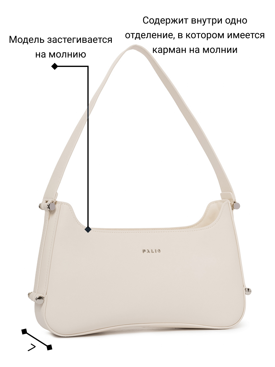 Женская сумка торговой марки Palio из натуральной кожи. Модель закрывается на металлическую молнию. Содержит внутри одно отделение в котором имеется карман на молнии. Высота ручки - 24 см. Модель не имеет ножки на дне. Не вмещает формат А4.