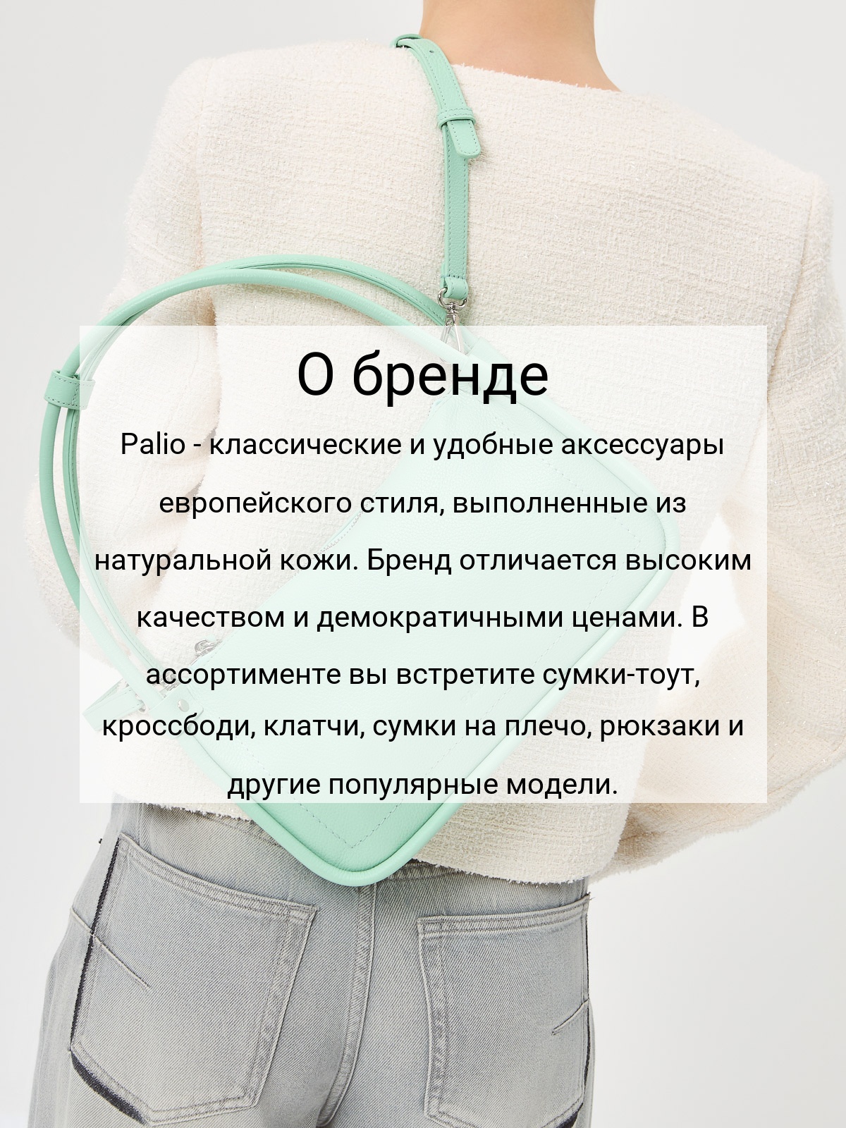 Женская сумка торговой марки Palio из натуральной кожи. Модель застегивается на молнию. Содержит внутри одно отделение в котором имеются карман на молнии и два открытых кармана. Высота ручек - 17 см. Длина регулируемого съемного плечевого ремня из натуральной кожи - 120 см ширина - 15 см. Модель не имеет ножки на дне. Не вмещает формат А4.