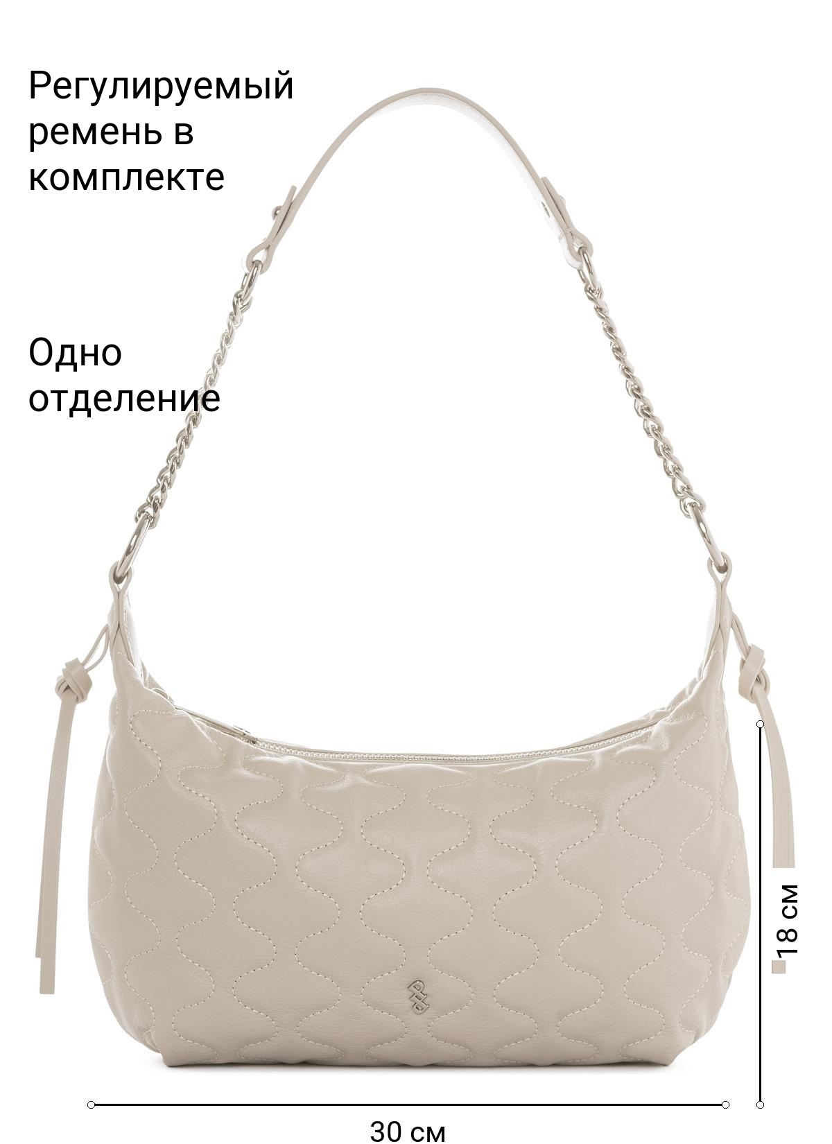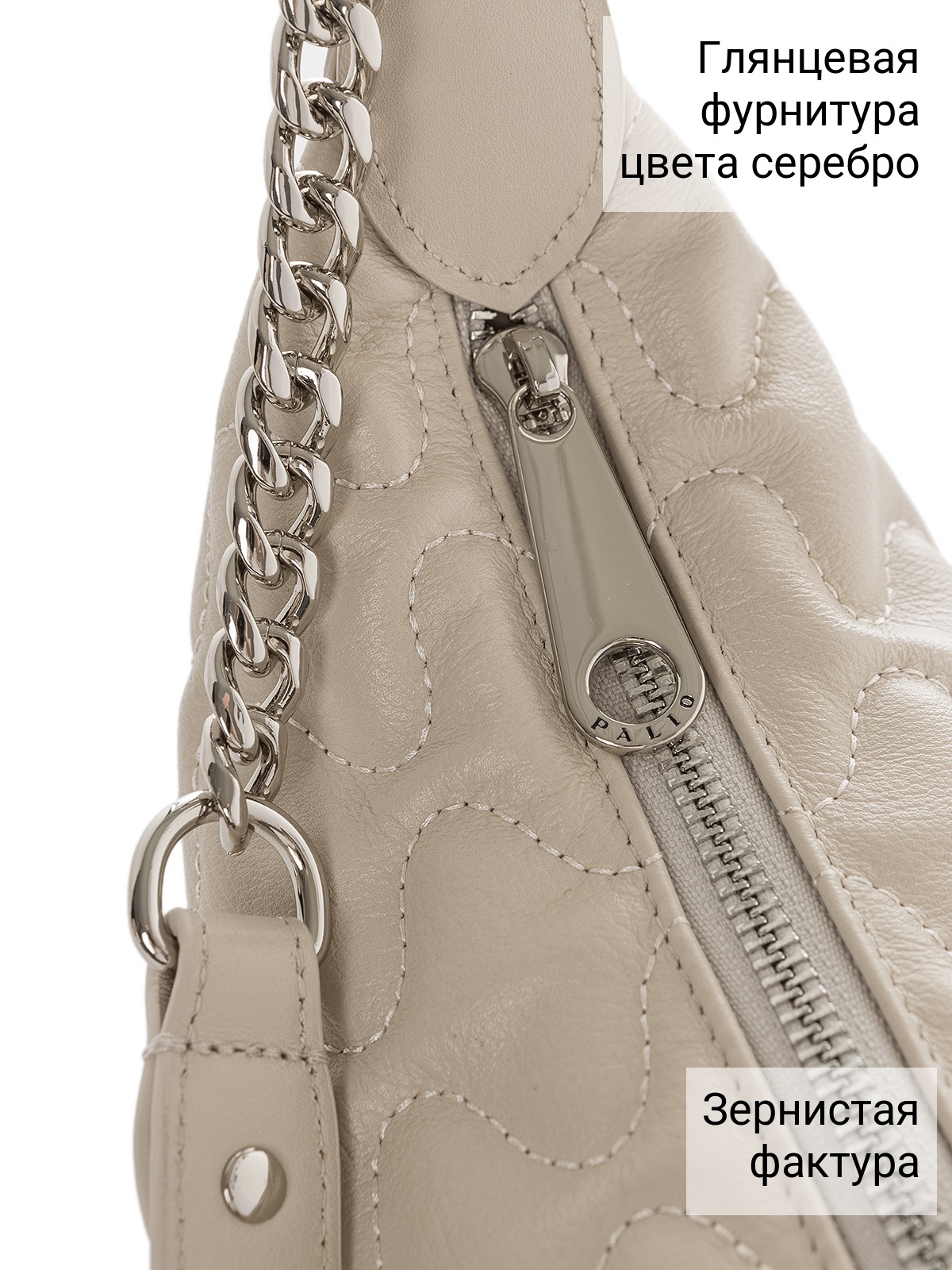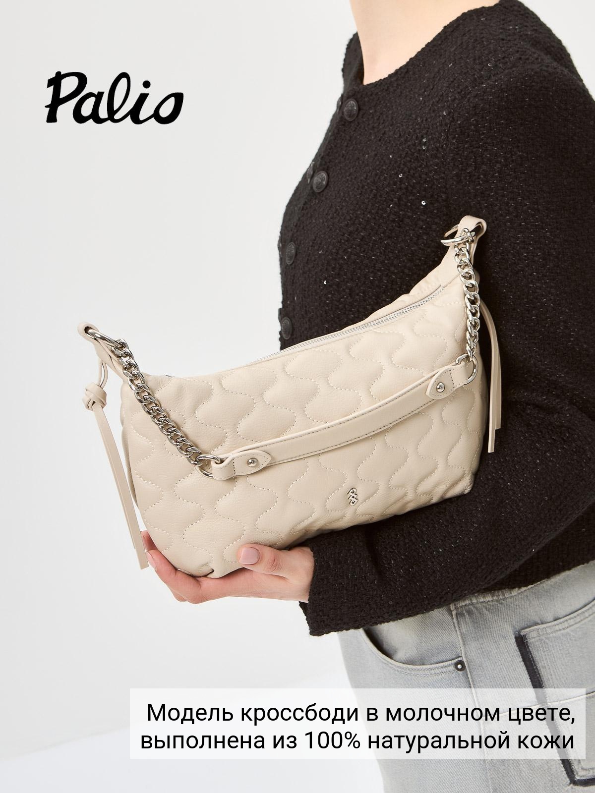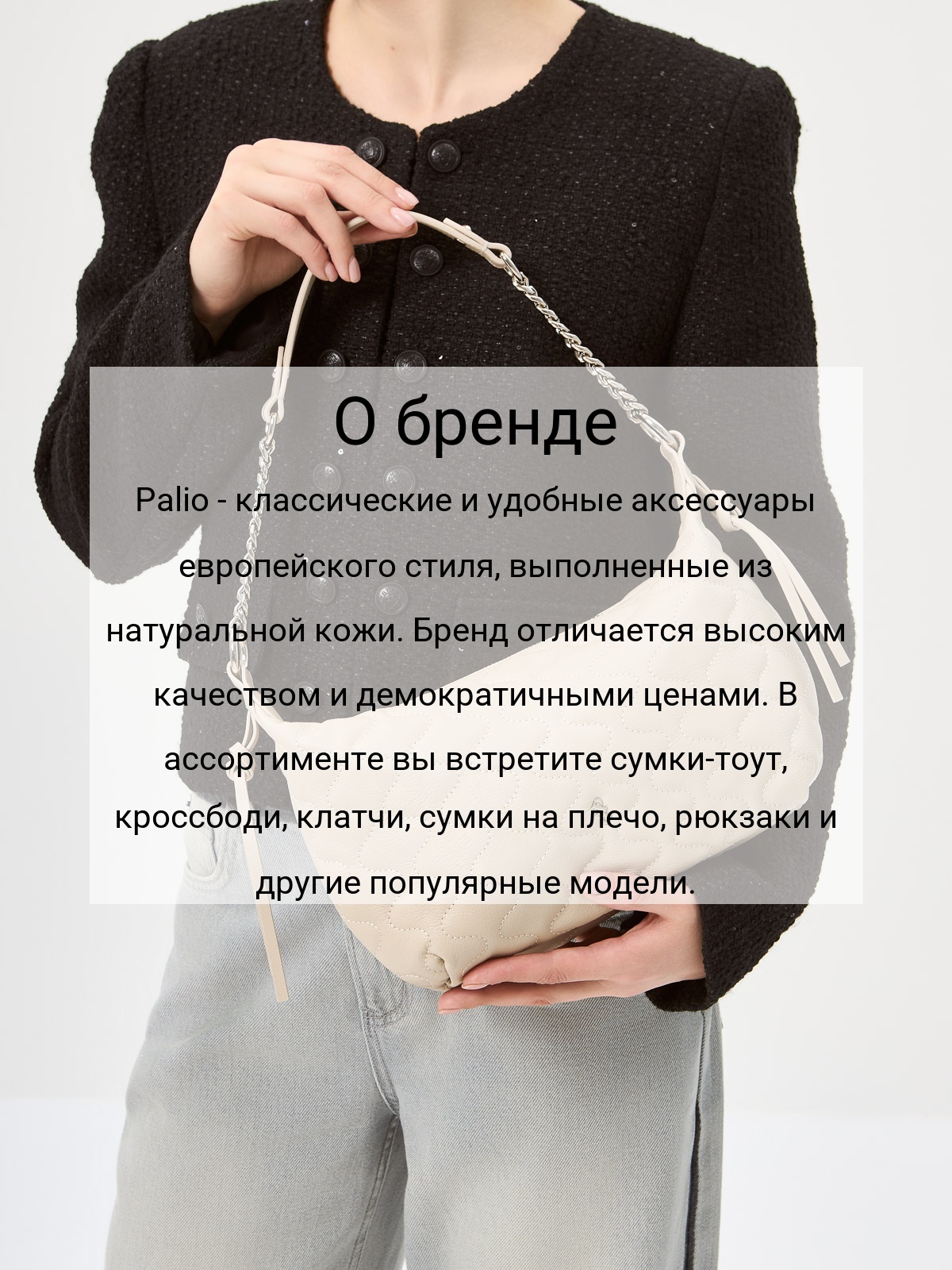 Женская сумка торговой марки Palio из натуральной кожи. Модель застегивается на молнию. Содержит внутри одно отделение в котором имеются карман на молнии и открытый карман. Высота ручки - 26 см. Длина регулируемого съемного плечевого ремня из натуральной кожи - 99 см ширина - 15 см. Модель не имеет ножки на дне. Не вмещает формат А4.