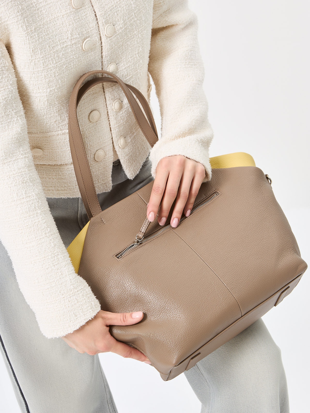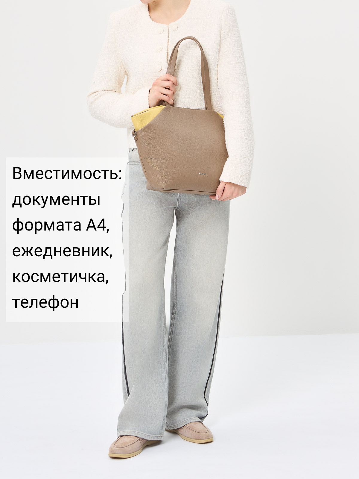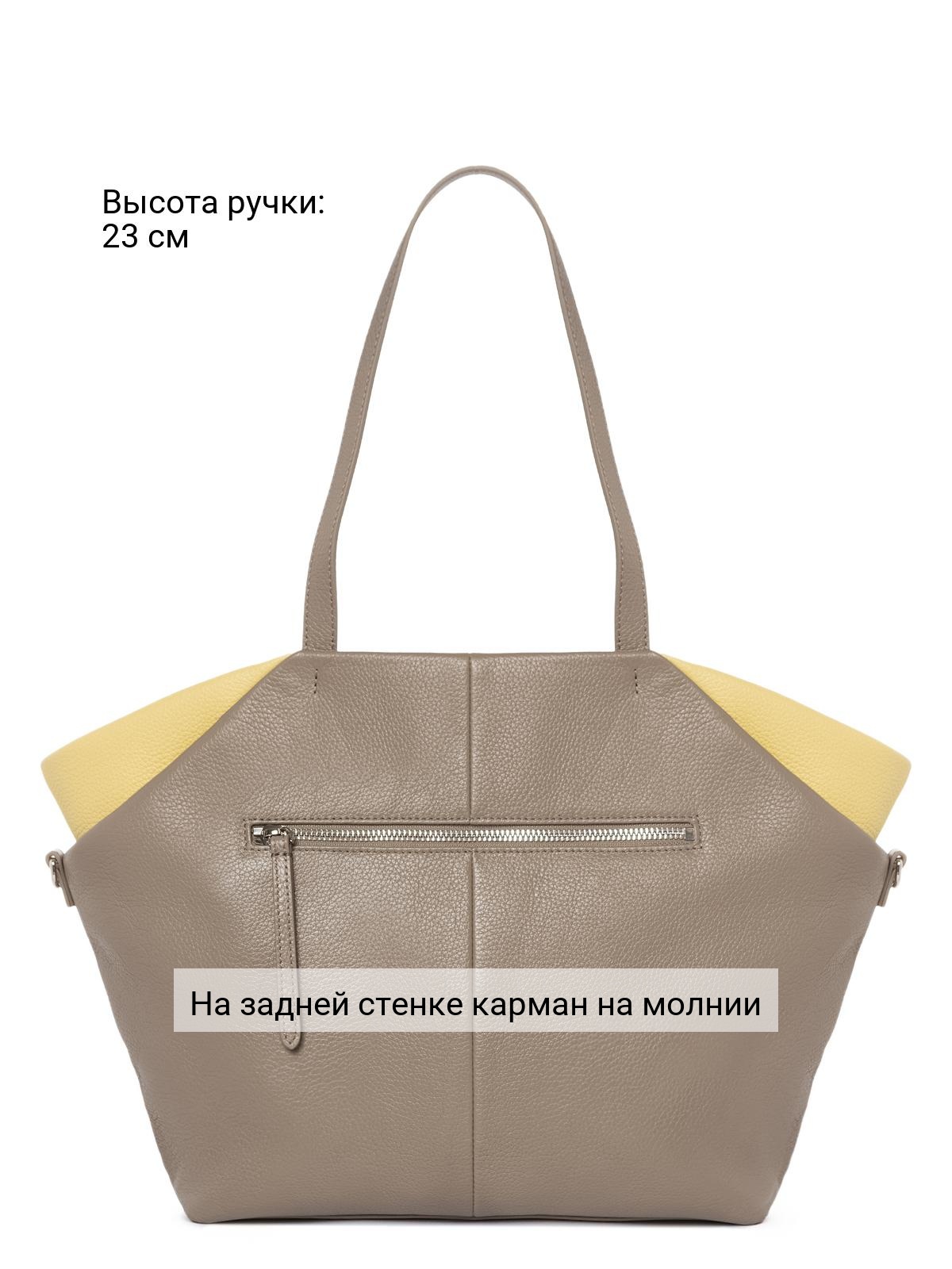 Женская сумка торговой марки Palio из натуральной кожи. Модель застегивается на молнию. Содержит внутри одно отделение в котором имеются карман на молнии и два открытых кармана. На задней стенке есть карман на молнии. Высота ручек - 23 см. Длина регулируемого съемного плечевого ремня из натуральной кожи - 94 см ширина - 15 см. Модель не имеет ножки на дне. Вмещает формат А4.