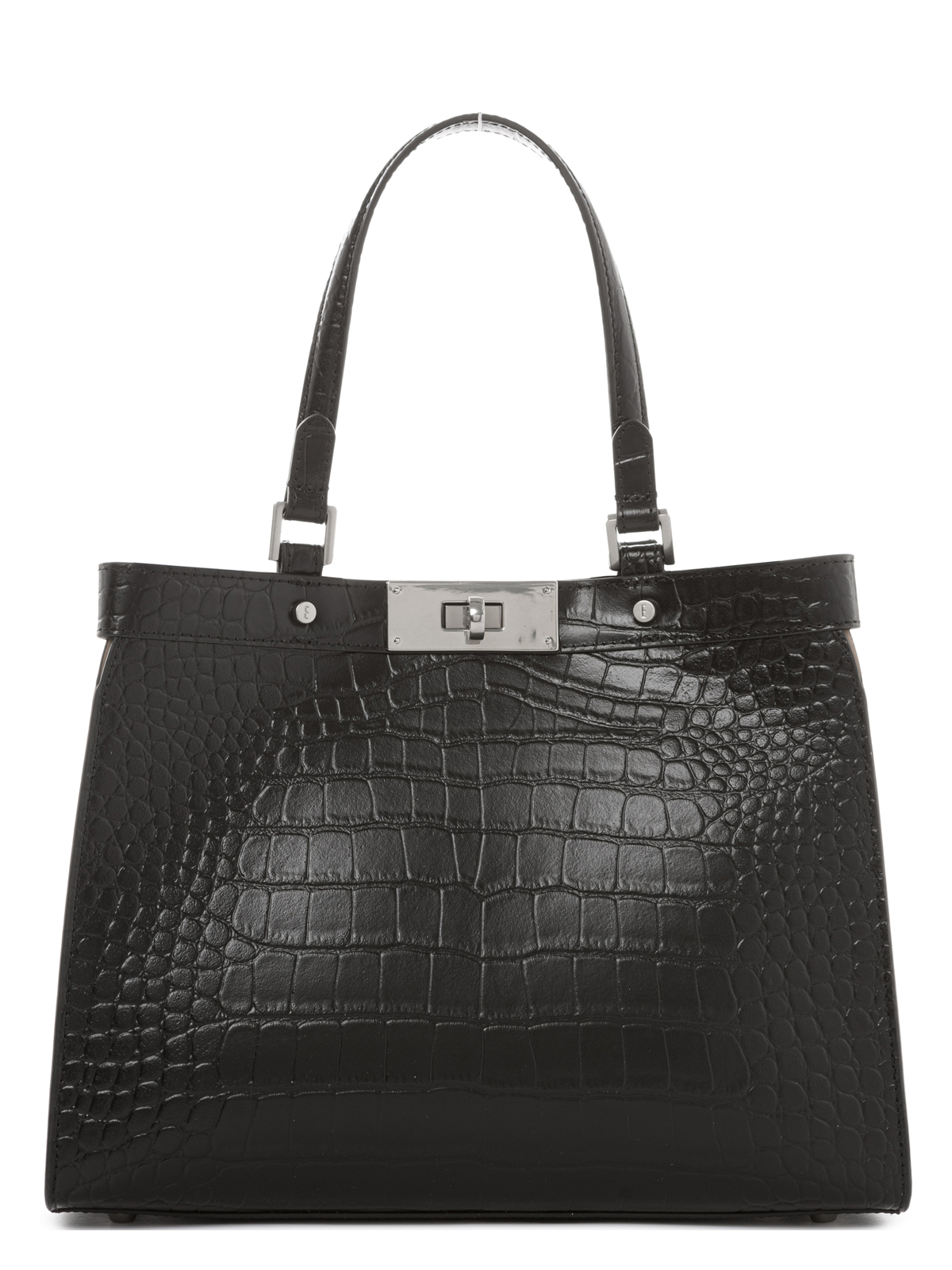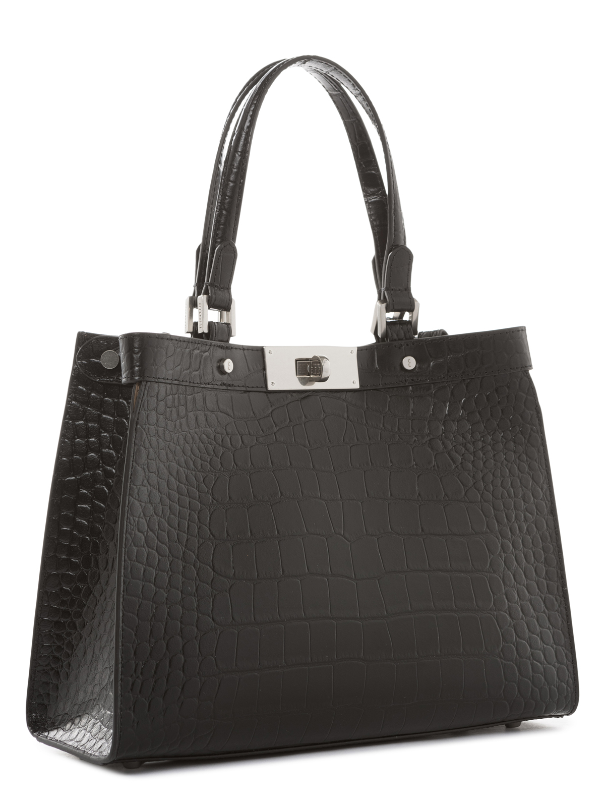 Женская сумка торговой марки Eleganzza из натуральной кожи с тиснением под крокодила. Модель трендовой лаконичной формы застегивается на поворотный замок. Одно отделение дублировано микрофиброй под кожу что повышает износостойкость изделия. Внутренняя организация - карман на молнии и открытый карман. Высота ручек - 16 см. Максимальная длина регулируемого съемного плечевого ремня из натуральной кожи - 113 см ширина - 2 см. Модель имеет ножки на дне. Не вмещает формат А4.