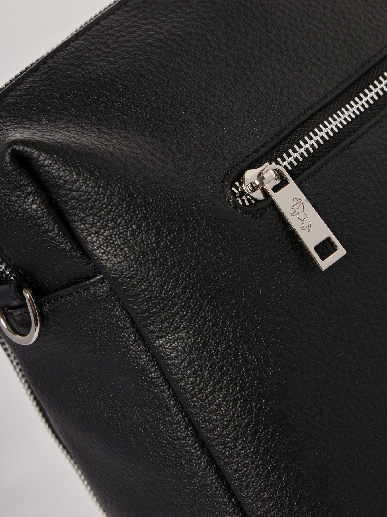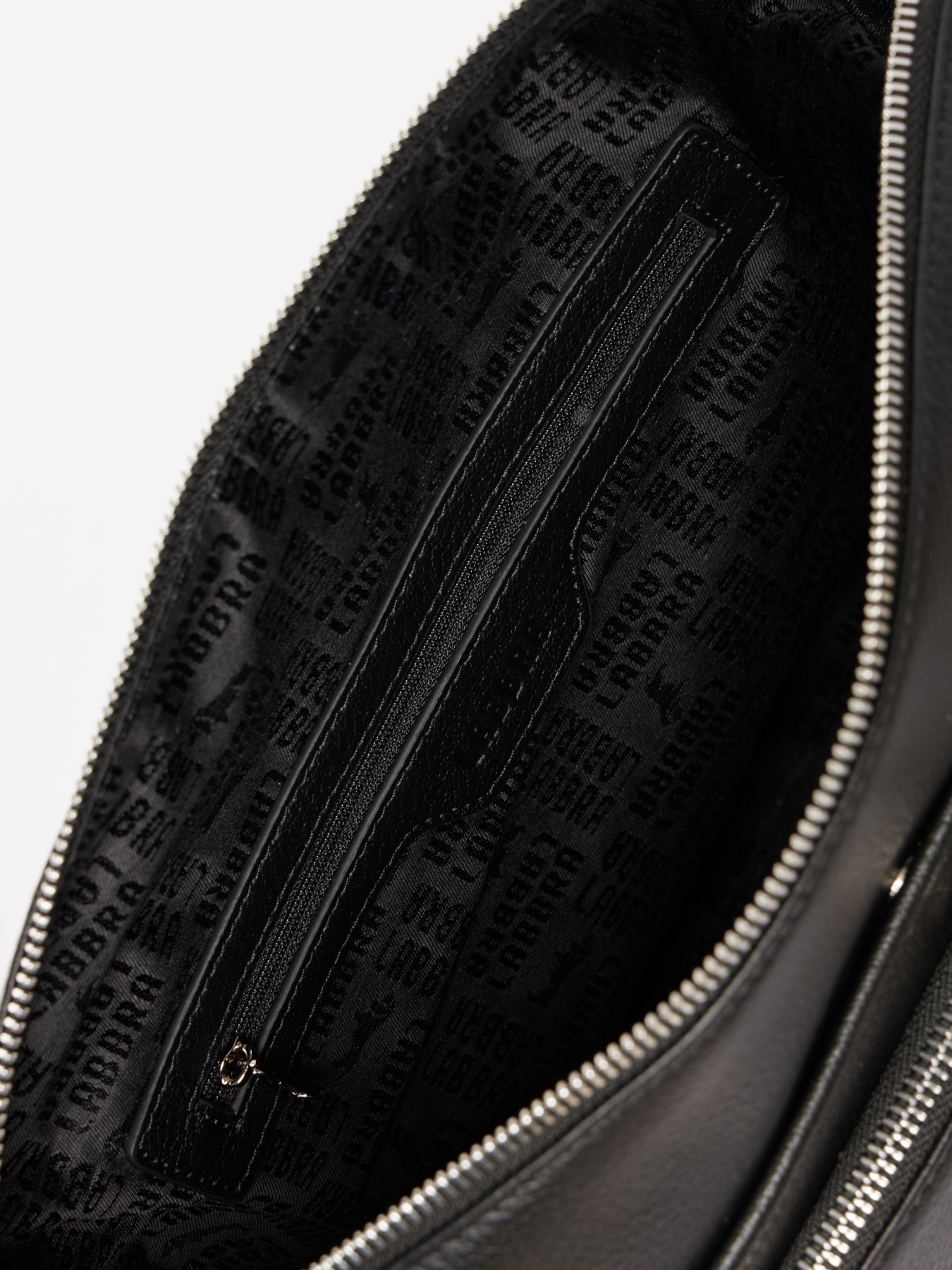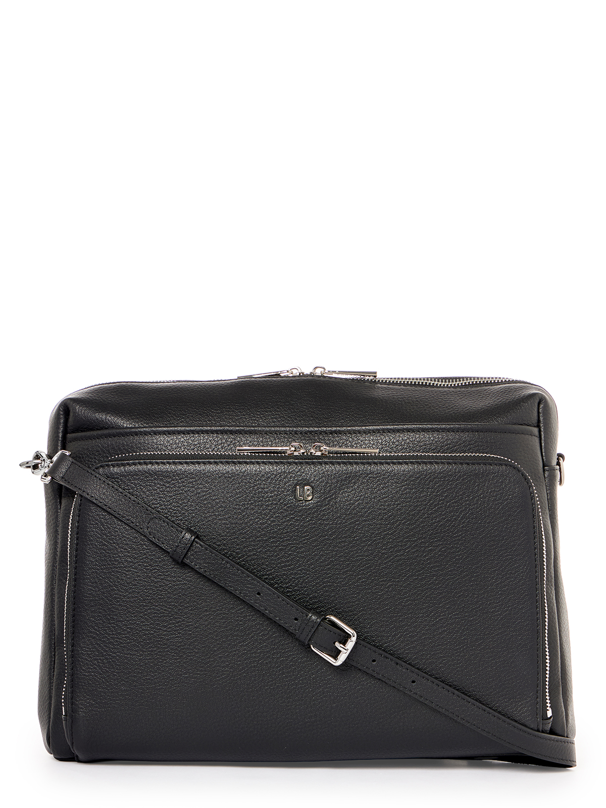 Женская сумка торговой марки Labbra из натуральной кожи. Модель застегивается на молнию. Содержит внутри одно отделение в котором имеются карман на молнии и два открытых кармана. На передней стенке сумки расположен карман на магните и дополнительный карман-органайзер на молнии состоящий из двух отделений разделенных между собой карманом-перегородкой на молнии также в нём имеются два открытых кармана и карманы для пластиковых карт. На задней стенке сумки расположен карман на молнии. Длина наплечного ремня из натуральной кожи - 95 см. ширина - 18 см. Длина дополнительного текстильного ремня 125 см ширина 38 см. Модель не имеет ножки на дне. Вмещает формат А4.