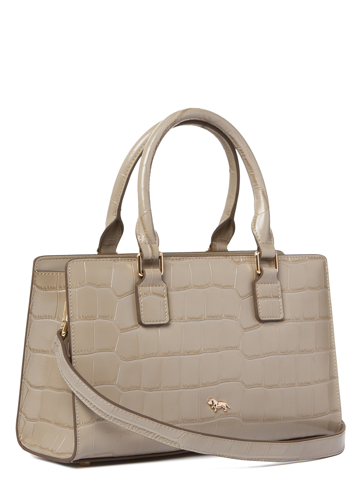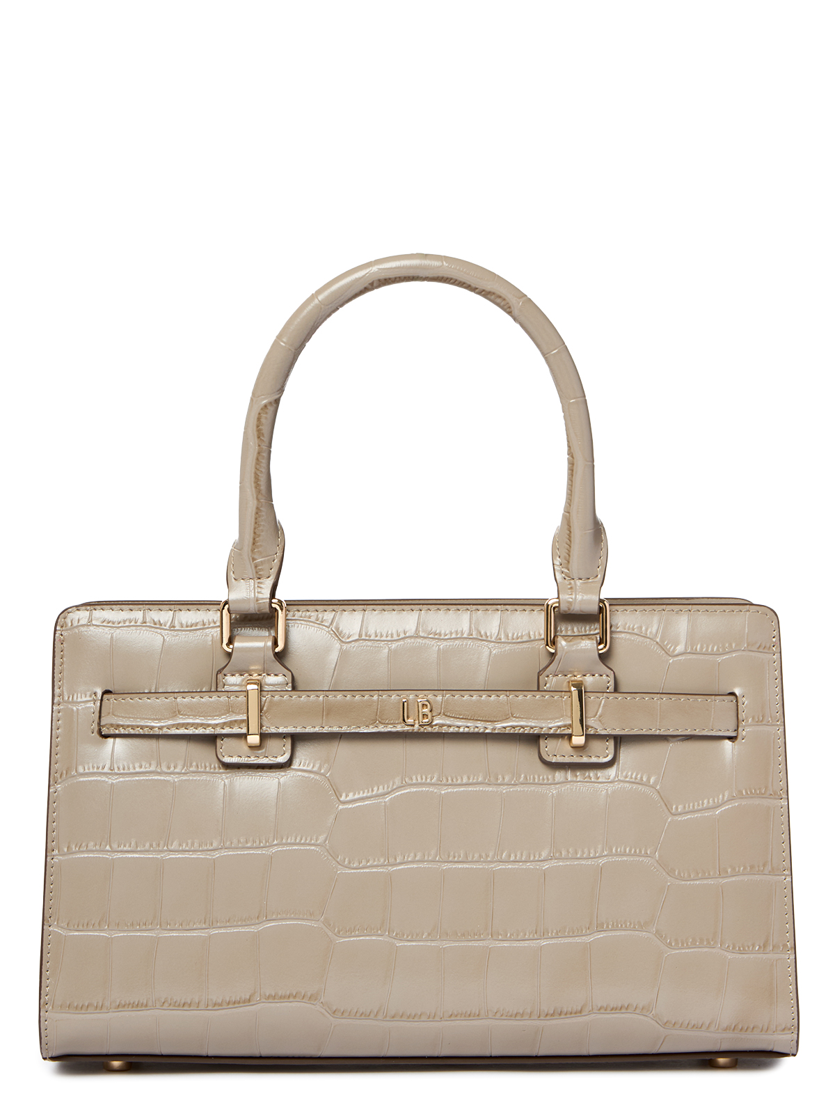 Женская сумка торговой марки Labbra из натуральной кожи с фактурным тиснением имитирующим крупную однородную кожу крокодила с объемным эффектом деграде. На передней стенке изделие дополнено декоративным кожаным ремешком с фирменным логотипом бренда. Модель застегивается на молнию. Внутри одно отделение с карманом на молнии открытым карманом и карманом на магнитной кнопке. Высота ручек - 12 см. Длина наплечного ремня из натуральной кожи - 95 см ширина - 18 см. Модель имеет ножки на дне. Не вмещает формат А4.