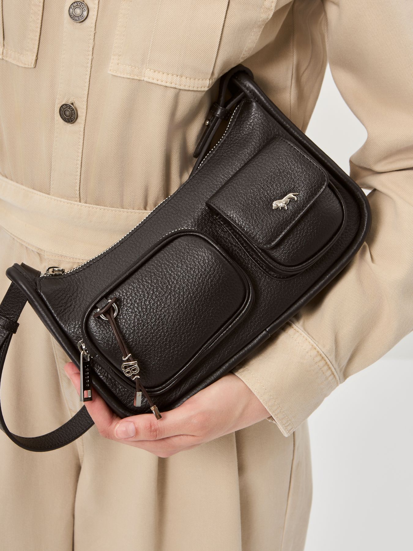 Женская сумка торговой марки Labbra из натуральной кожи. Новая айдентика любимого бренда представлена в оригинальной подвеске из кожи с авторской фурнитурой. Объемные накладные карманы в стиле cargo которые стали популярны не только в одежде но и в сумках добавляют изделию функциональности. Они идеально вписываются в повседневный городской стиль sport-chic сочетая в себе практичность и современный дизайн. Модель застегивается на молнию. Внутри одно отделение с карманом на молнии и открытым карманом. Дополнительные карманы на передней и задней стенках сумки. Высота ручки - 27 см. Максимальная длина регулируемого съемного плечевого ремня из натуральной кожи - 112 см ширина - 1 см. Модель не имеет ножки на дне. Не вмещает формат А4.
