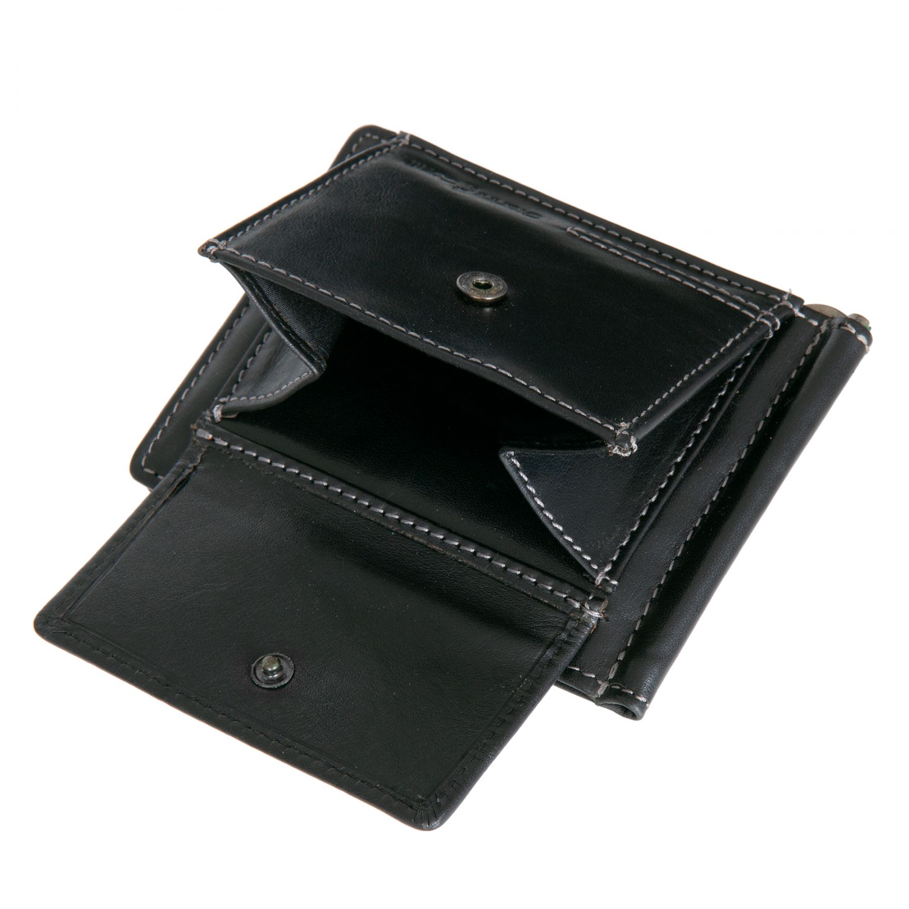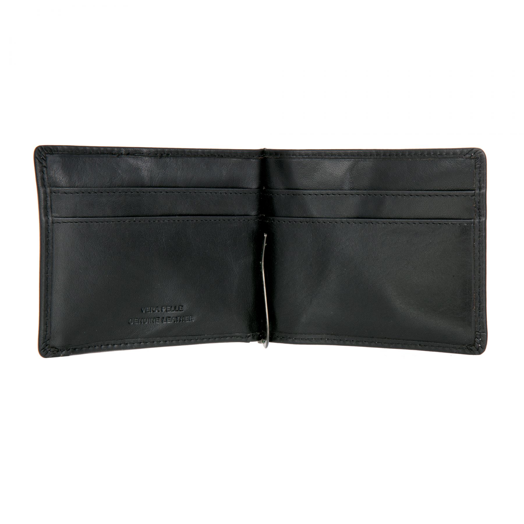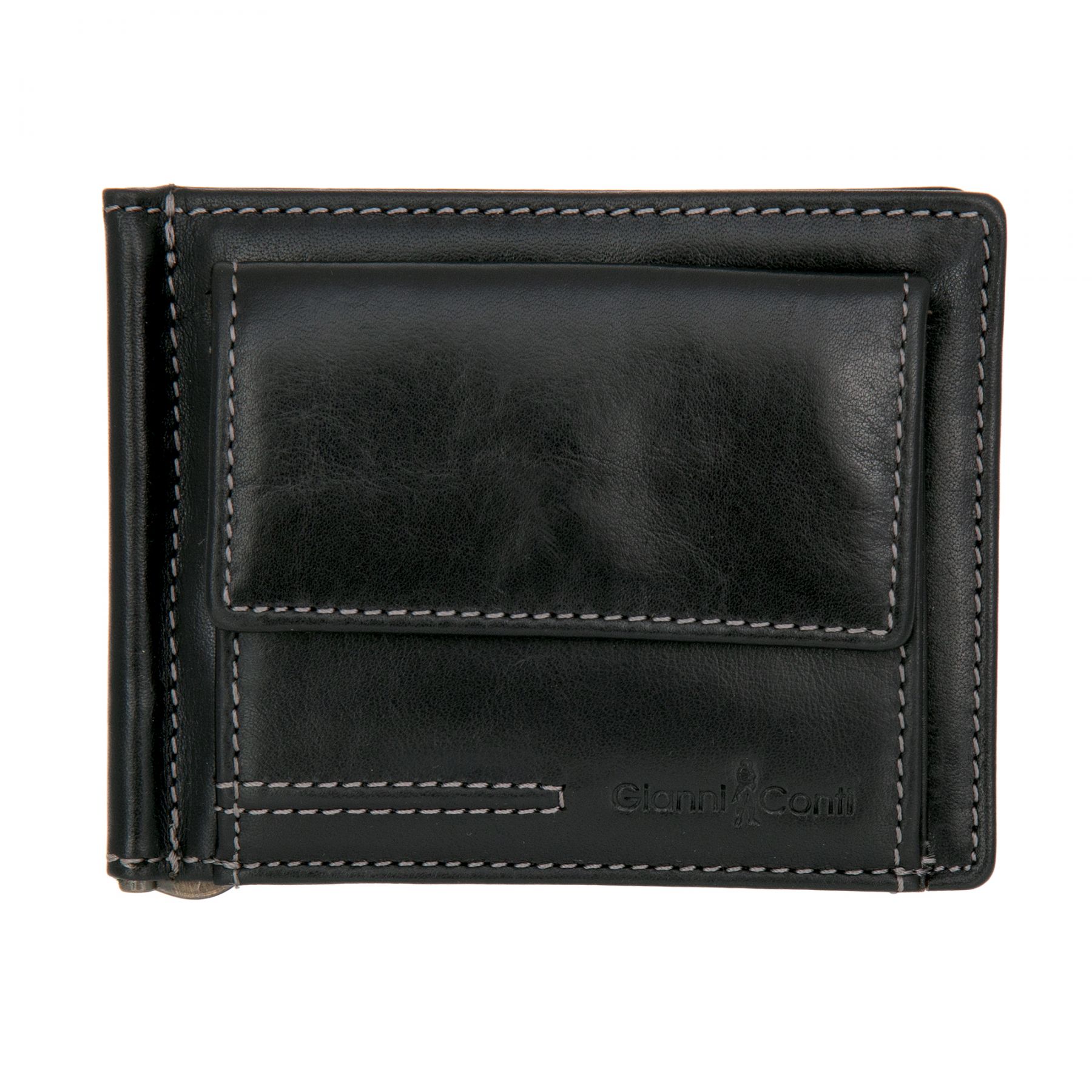 Зажим для денег Gianni Conti. Раскладывается пополам. Внутри: металлический зажим для купюр, четыре кармана для пластиковых карт. Снаружи: карман для монет на кнопке.